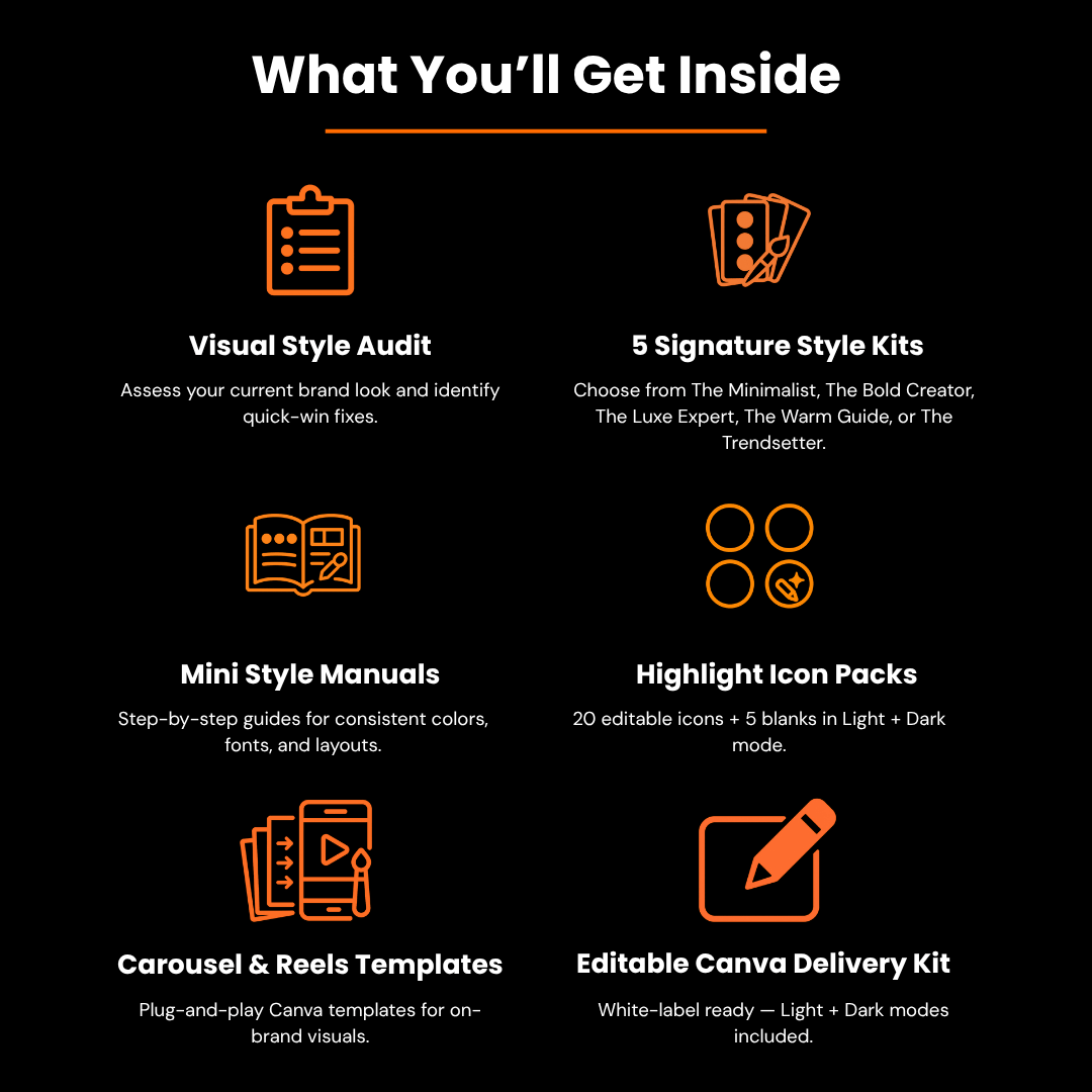 This fast-action, plug-and-play system helps you create a polished Instagram brand that’s clear, cohesive, and instantly recognizable.